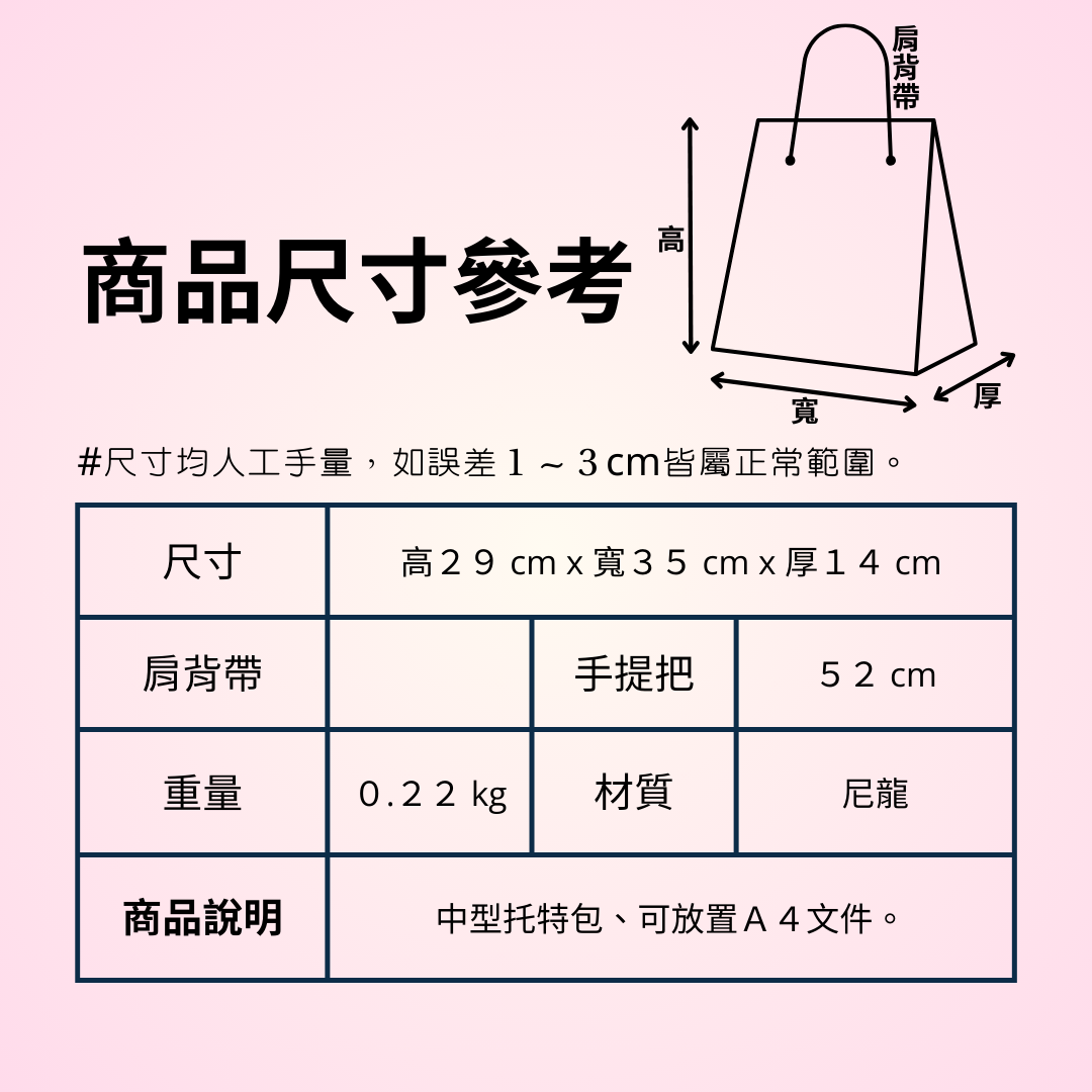 肩背帶長 : 52 cm