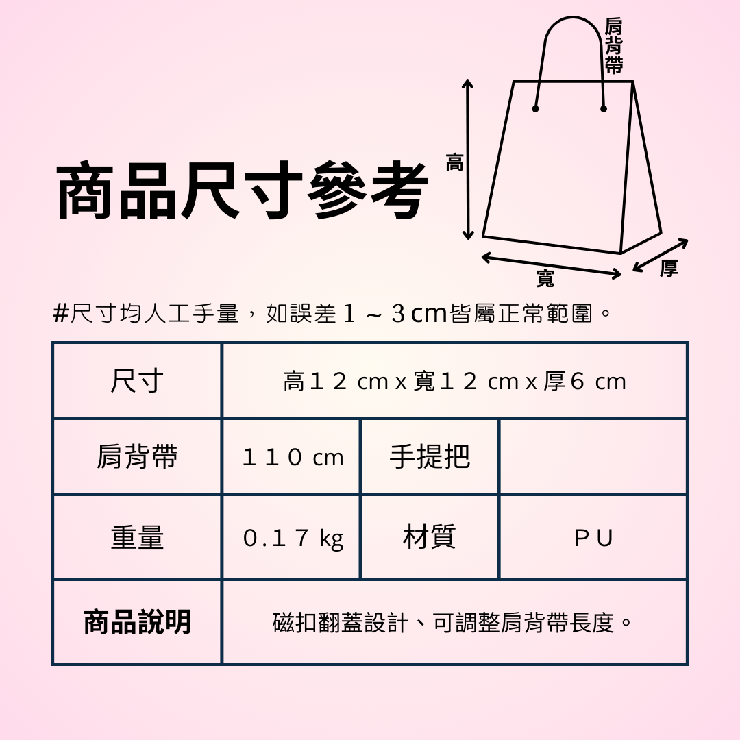 肩背帶長 : 110 cm 背帶可調整長度